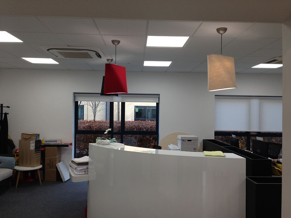 Strip out and refurbishment of existing offices. Incorporating new LED lighting panels through out. New data and reconfigured power socket outlets. Installation of feature pendant lighting.